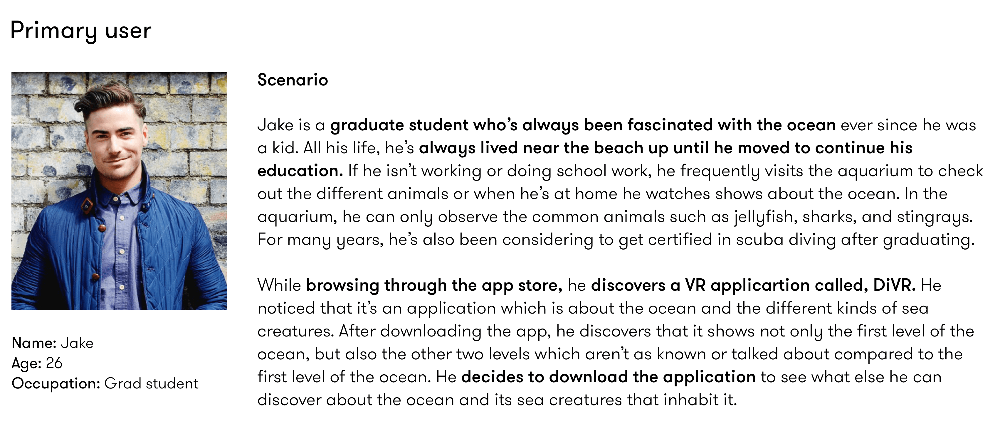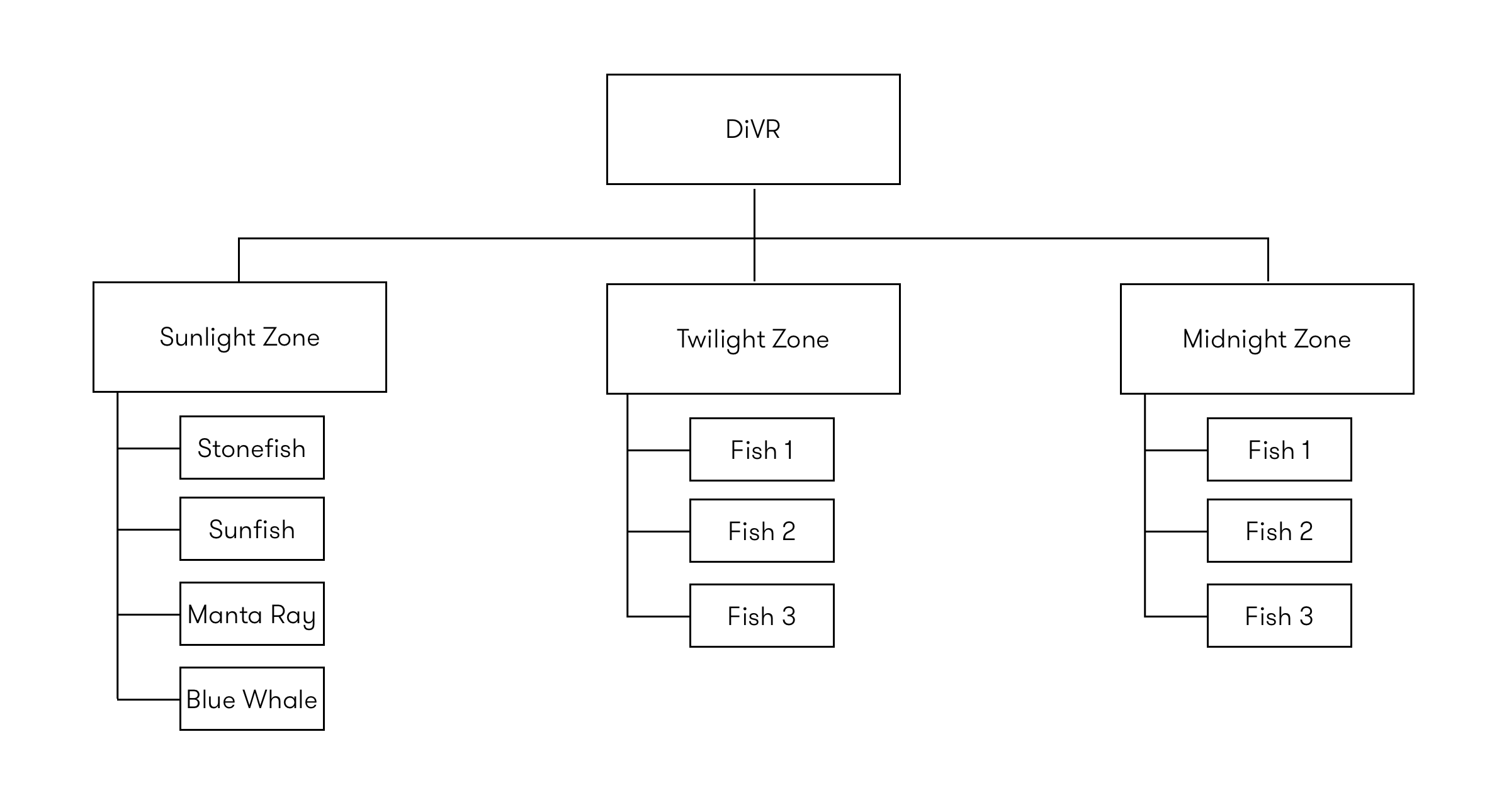 After several rounds of user testing, I decided to make DiVR an immersive VR application instead, showing people the three main levels of the ocean and the sea creatures that inhabit each level.