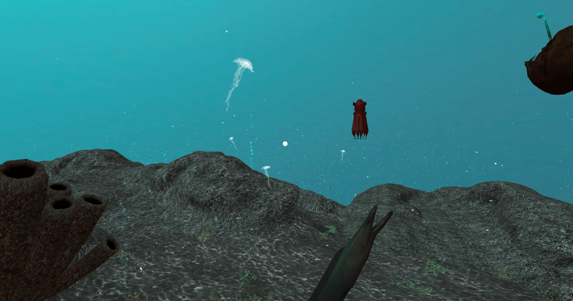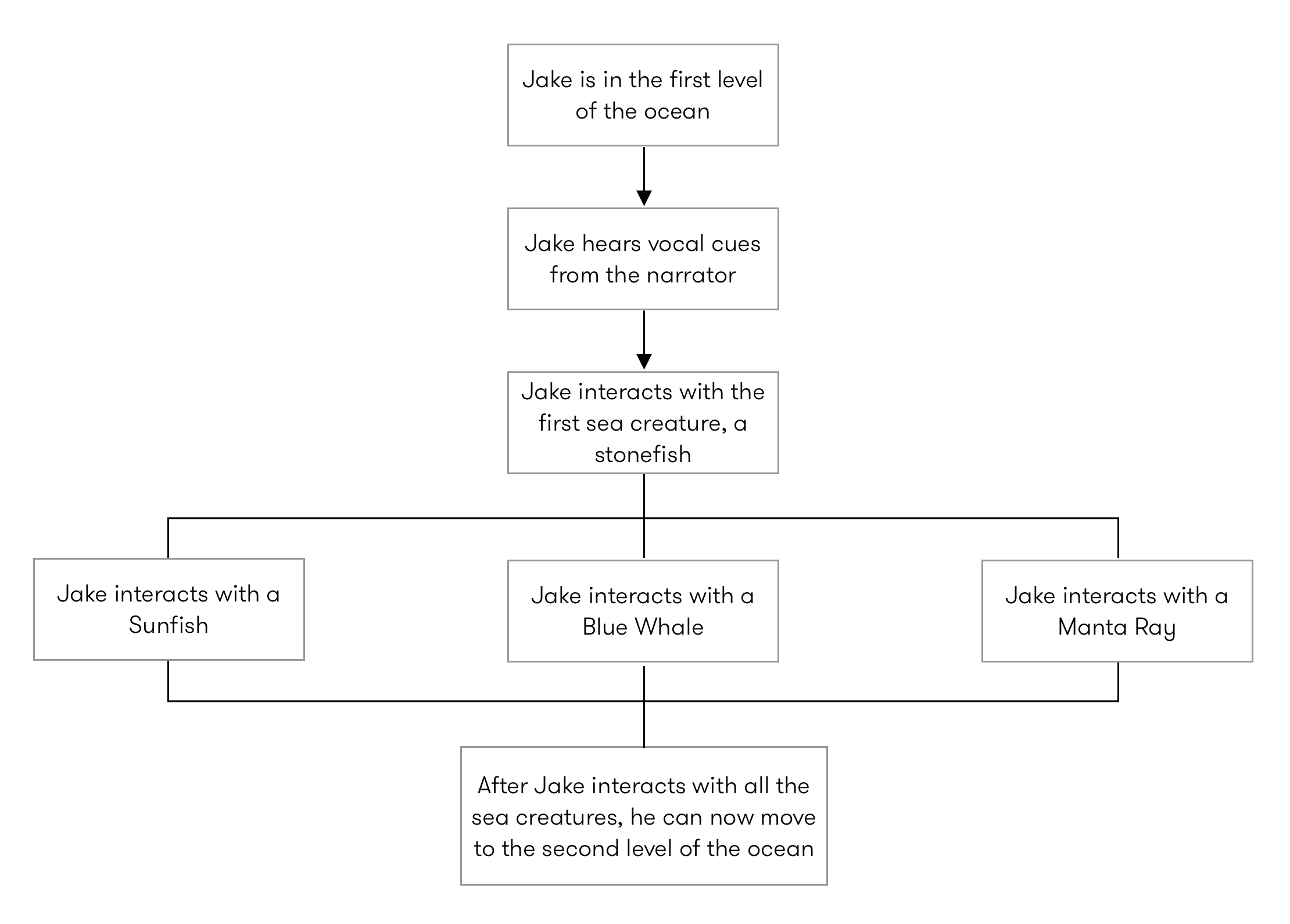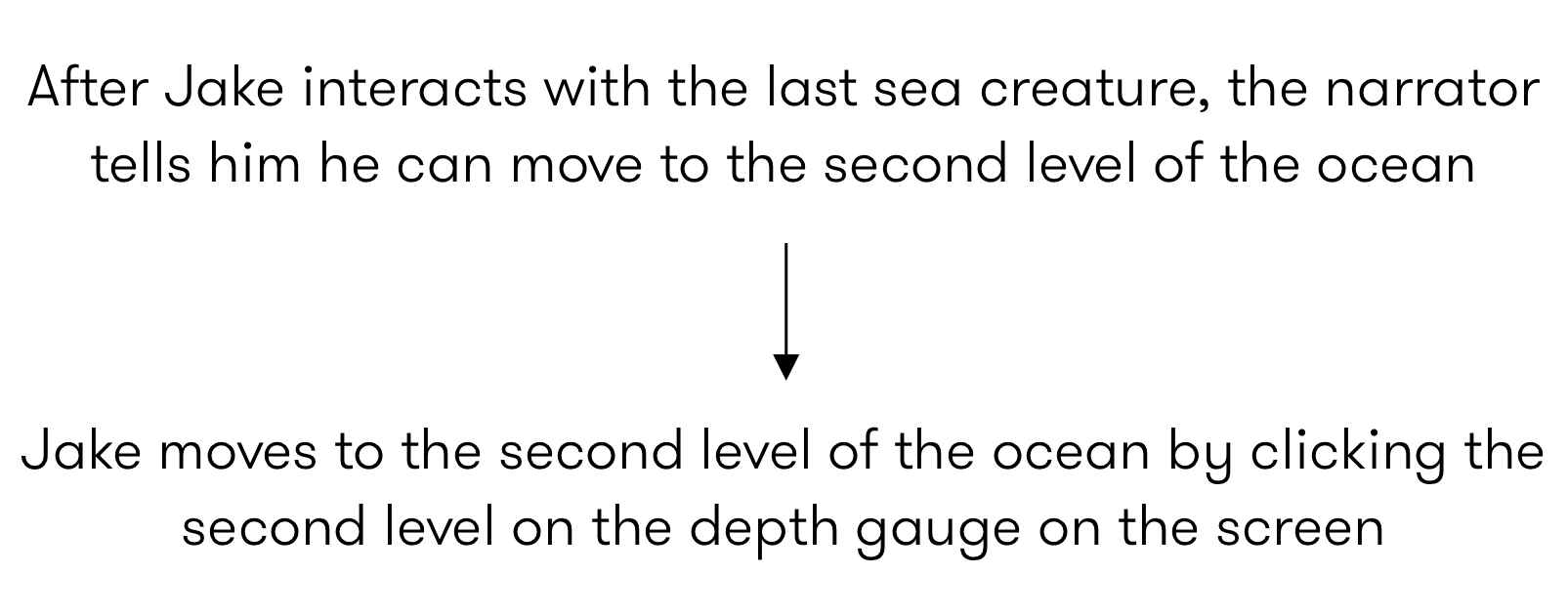 After Jake learns how to use the app and hears the narrator for the first time, he must learn about the sea creatures he encounters in the Sunlight Zone.